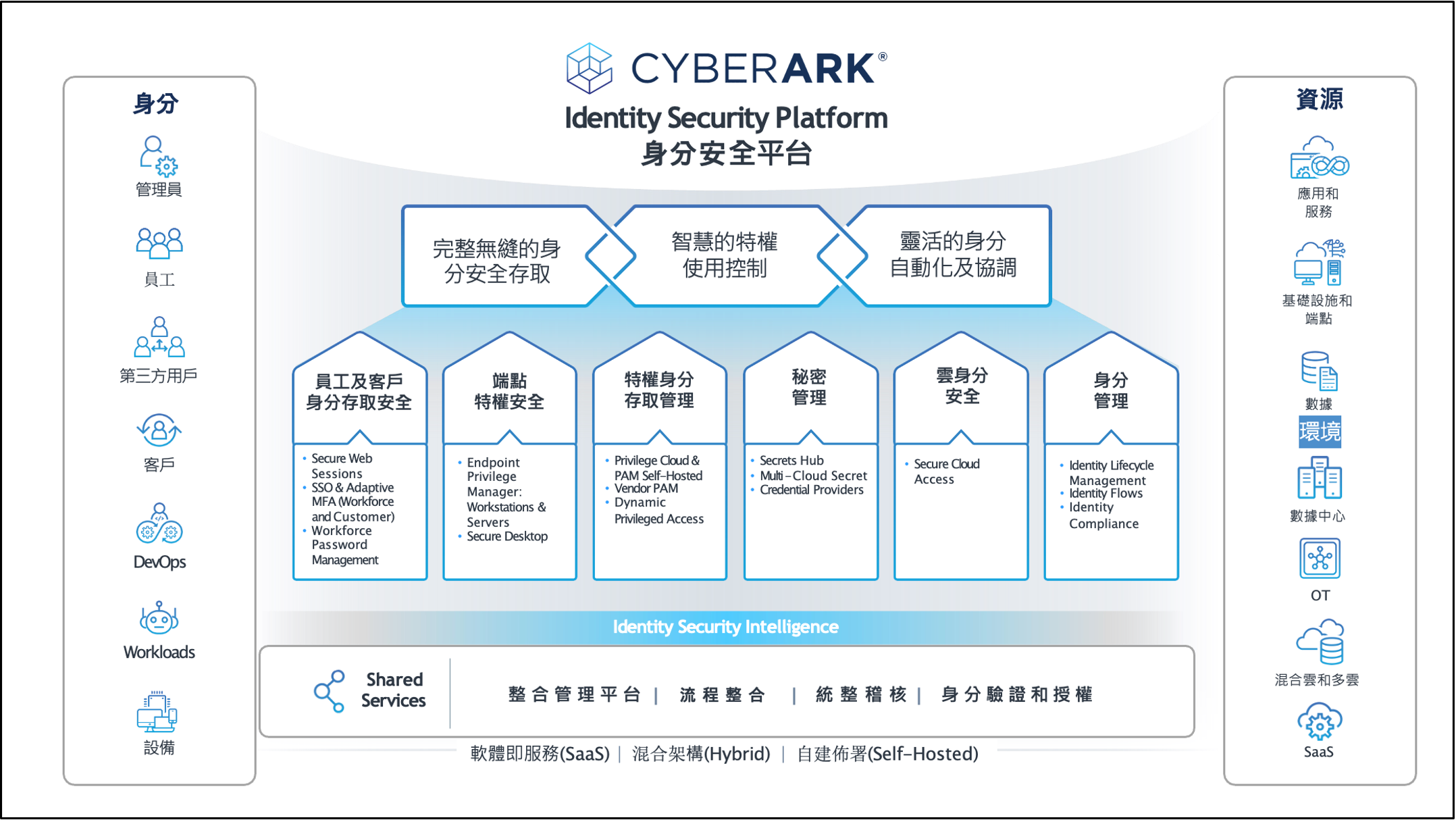 CyberArk 提供端到端的身分安全管理,涵蓋存取控制、特權防護、機密管理與稽核合規,協助企業以單一平台,實現全面的身分治理。