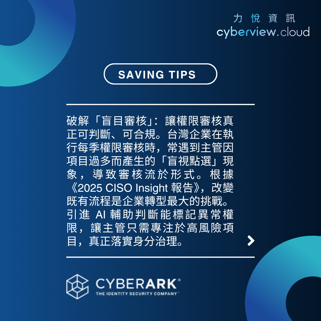 根據 CyberArk 發布的《2025 年身分安全概覽》,近半數組織仍缺乏對雲端權限的完整可視化。