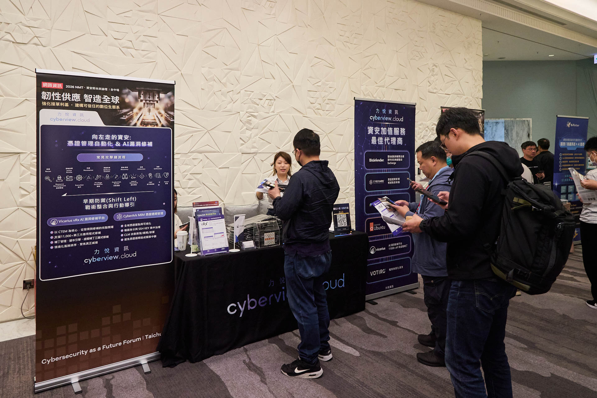 在資安人力有限、系統持續擴張的情況下,如何高效率落實防禦已成為關鍵課題。現場也與產業夥伴交流,探討如何透過 AI 強化漏洞管理、加速修復並降低營運風險。