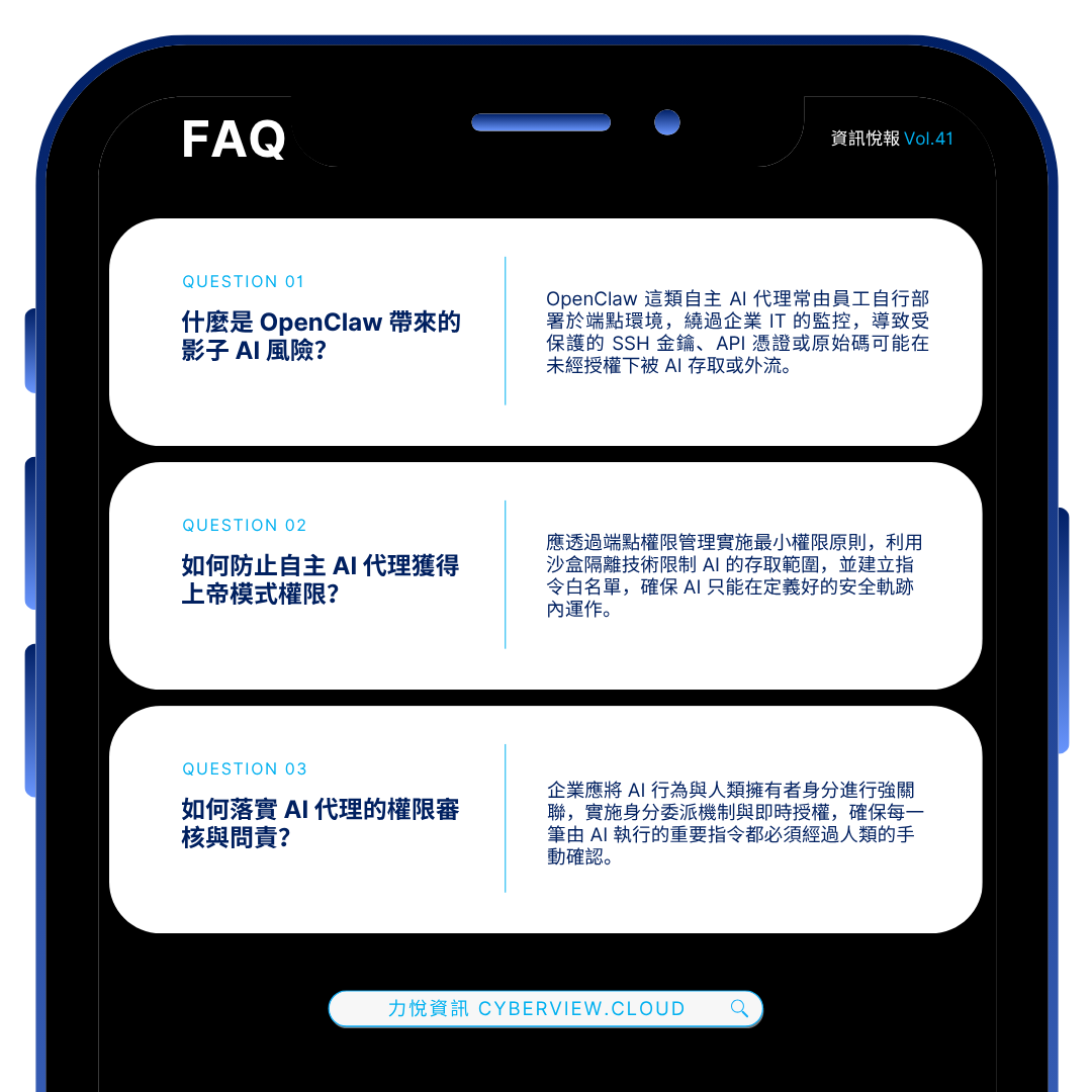 對使用者而言,OpenClaw 是一項強大的生產力工具。對企業資訊安全長(CISO)來說,