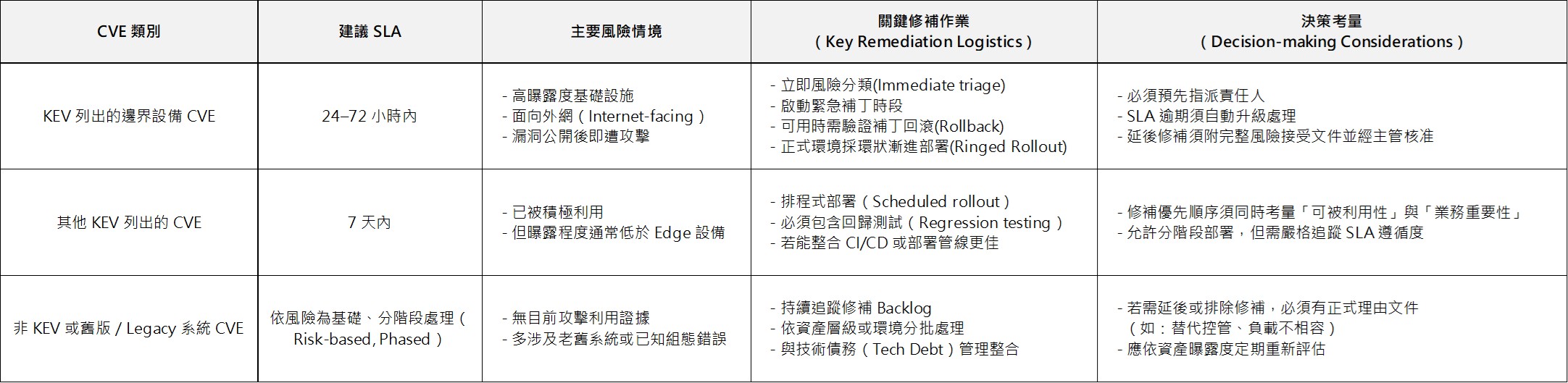 將 SLA 與修補流程真正「制度化」:以 KEV 為核心的修補作業手冊