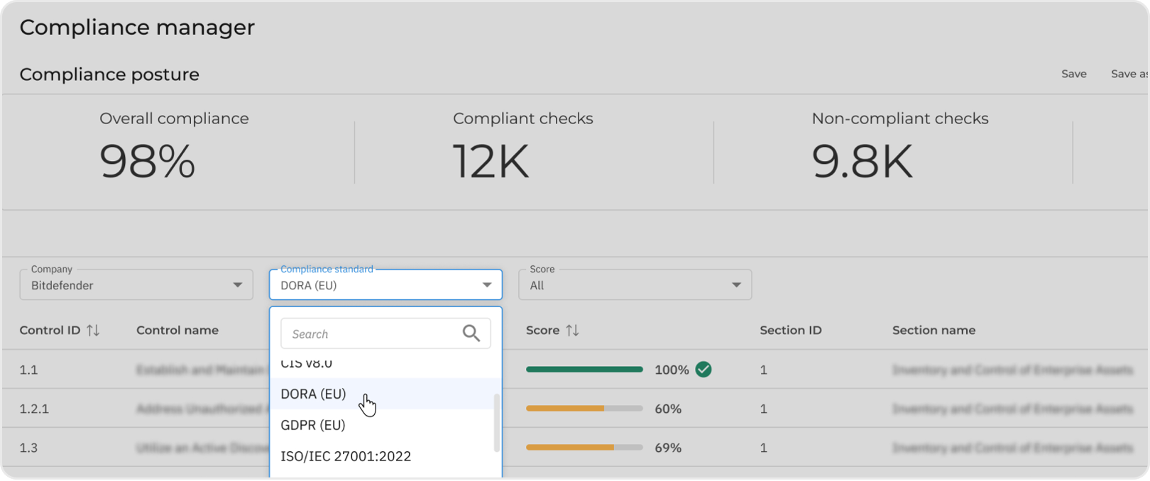 與EDR、防毒整合開箱即用的單一平台,可協助您內建多種合規框架(ISO、PCI、NIST…),透過跨雲端和本地環境的自動化合規性管理,簡化稽核和報告流程,自動掃描與比對設定,並一鍵處理快速修復檢測到的合規性差距、生成客製化稽核報告,讓合規變得更簡單。
